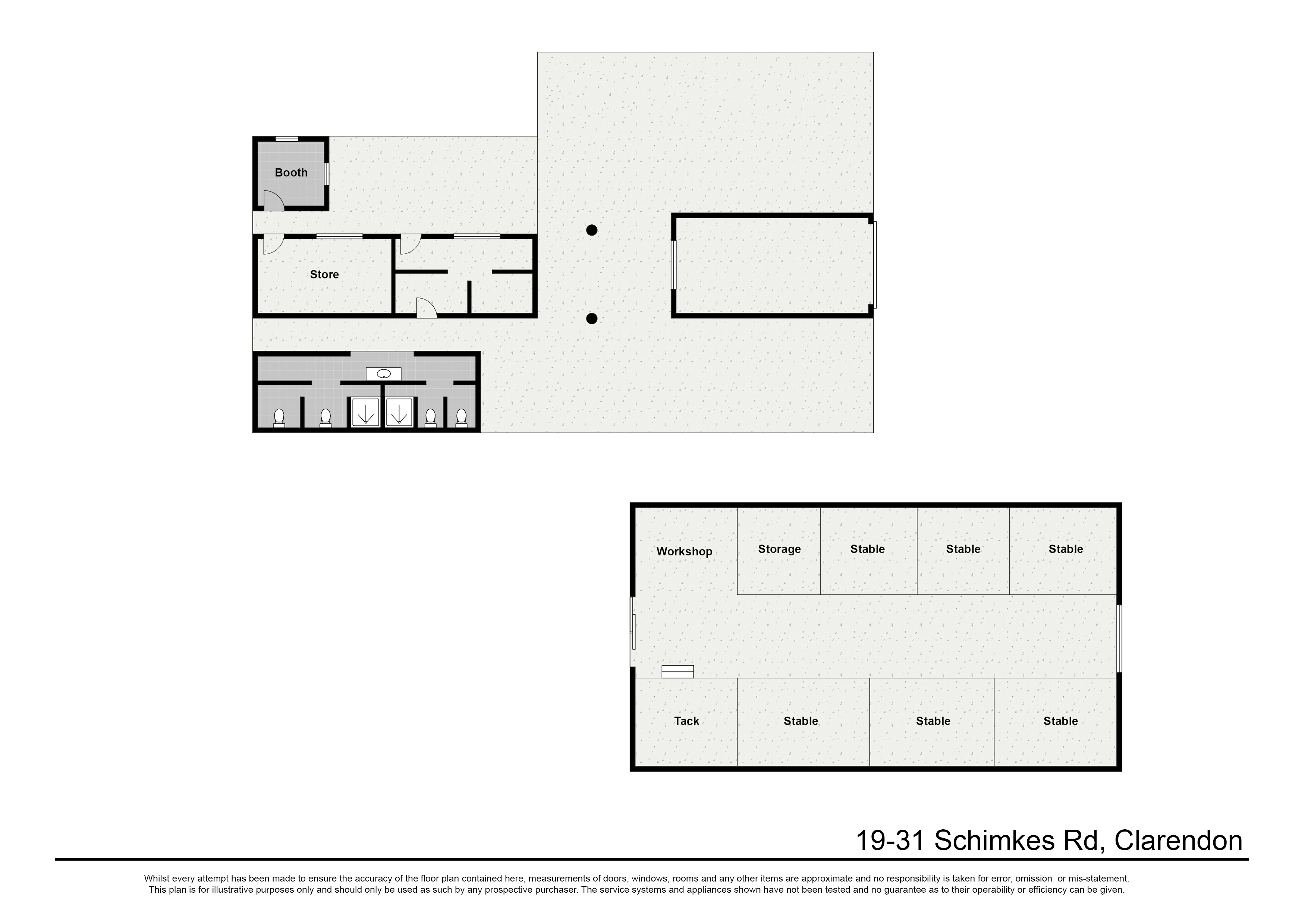 1200 m2 total under roof shed & stables, with multiple use rooms including a.c office, studios, callers room, tuck shop & garage with car hoist
